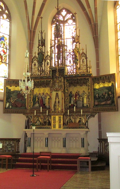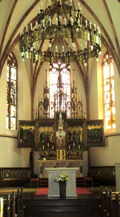 1909-10; Origineller Bau in spätgotischen Formen von Dombaumeister Julius Wirtz, Trier. Die neugotische Ausstattung ist vollständig erhalten. Nebenaltar Mitte 18. Jahrhundert; Rokoko. Reliefs von einem Steinaltar, um 1630. [1]