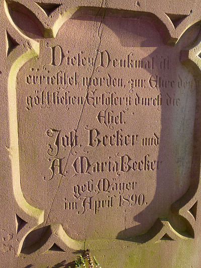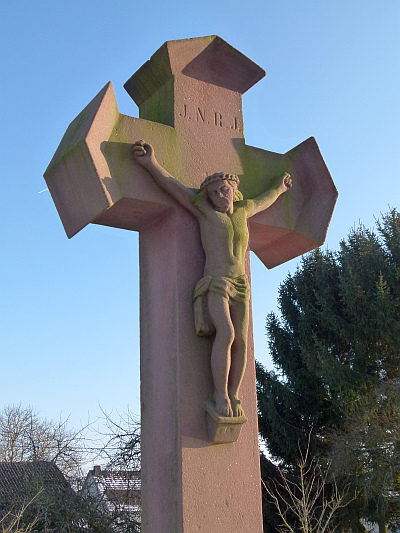 Auf dem bereits 1812 angelegten Friedhof steht ein Friedhofskreuz von 1890 in der damals üblichen Form, bei der das eigentliche Kreuz auf einem altarähnlichen Sockel ruht. Der Inschrift zufolge wurde das Kreuz durch die Eheleute Joh. Becker und A. Maria Becker geb. Mayer gestiftet. [1]