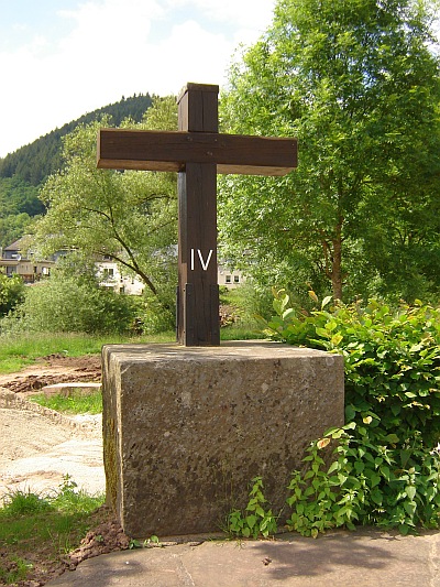 [...] Das Kreuz war 4. Station des Fußfallkreuzwegs - vermutlich seit dem Bau der Kapelle (und 1. Station) in der Hinnichtgass (heute Friedhofstraße) im Jahre 1678. [...] [1]