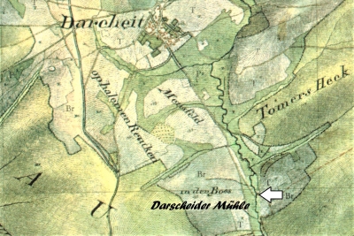 [...] Immer wieder forderten sie [die Darscheider] den Bau einer eigenen Mühle, doch es dauerte mehr als vier Jahrzehnte, bis der Kurfürst am 24. April 1710 ihrem Antrag entsprach.