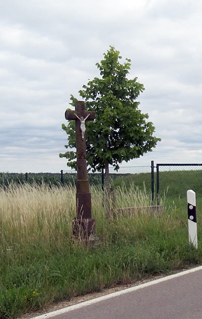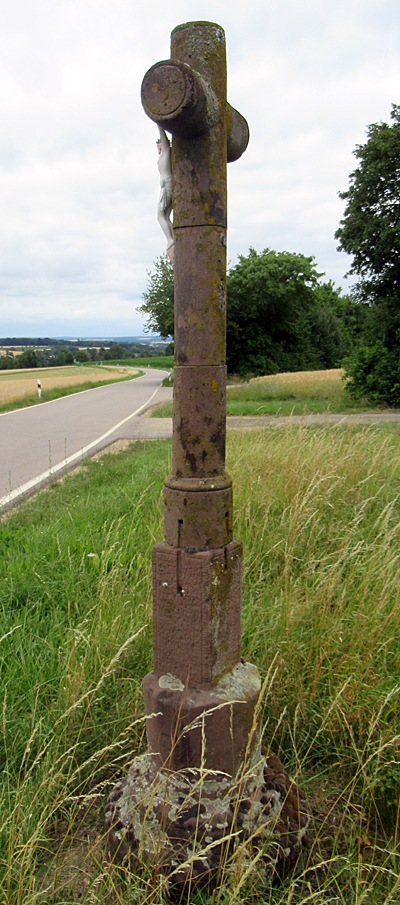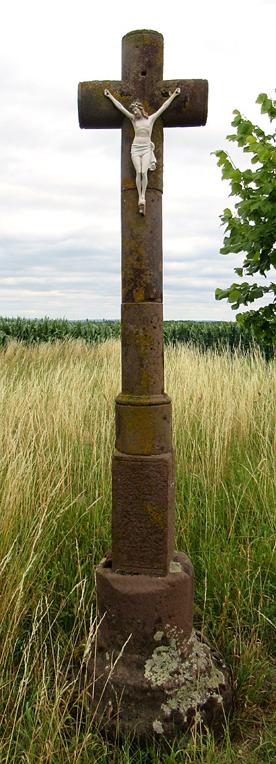 Pastor Hubert Prim war ein Freund der Wegkreuze und renovierte das Kreuz. Es wurde nicht, so wie die Inschrift besagt, von ihm errichtet. [1]