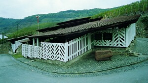 Im Zuge der Flurbereinigung wurden hier in den Jahren 1985/86 umfangreiche Reste eines 45 x 20 Meter großen römischen, im Laufe des 4. Jahrhunderts mehrfach erweiterten Gebäudes angeschnitten, zu dem mindestens vier Kellerräume und eine Doppelkelteranlage gehörten., die zunächst je zwei Maischebecken, viertelkreisförmige Preßbecken und Mostbecken umfasste. Über den unter einem Schutzbau konservierten Pressbecken wurde nach den bei den Grabungen gewonnenen Erkenntnissen sowie aufgrund antiker Darstellungen eine Spindelkelter mit schwebendem Gewicht rekonstruiert, die alljährlich im Rahmen eines Kelterfestes in Betrieb genommen wird. Ein zweiter, vor dem Schutzbau aufgestellter Kelterstein lässt die charakteristischen Einarbeitungen für deren Aufhängung erkennen. In einem der westlich von der Kelteranlage freigelegten Kellerräume wurde nachträglich eine Rauchkammer (fumarium) installiert, in der der Wein vorzeitig gealtert werden konnte.