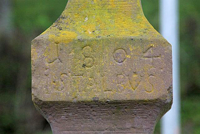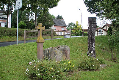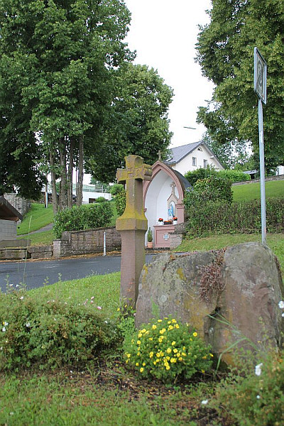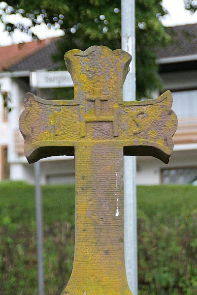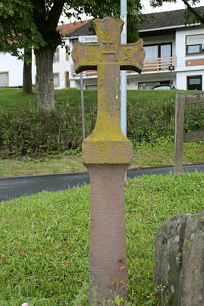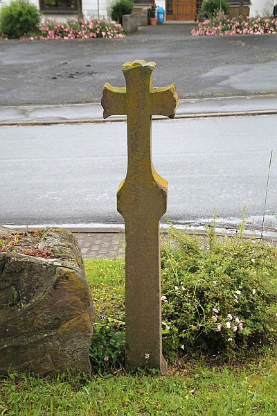 Das nicht sehr hohe Schaftkreuz ist 1804 datiert. Der Querbalken des doppelt gespaltenen Aufsatzkreuzes trägt statt des Korpus ein Jesus-Monogramm. [1]