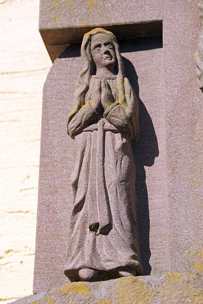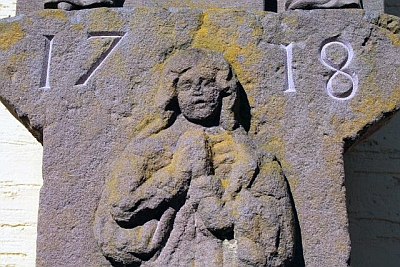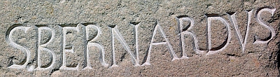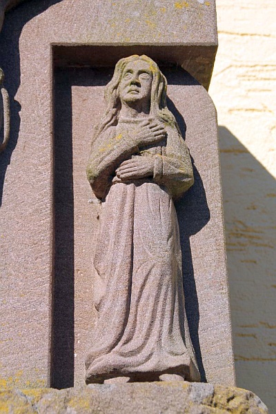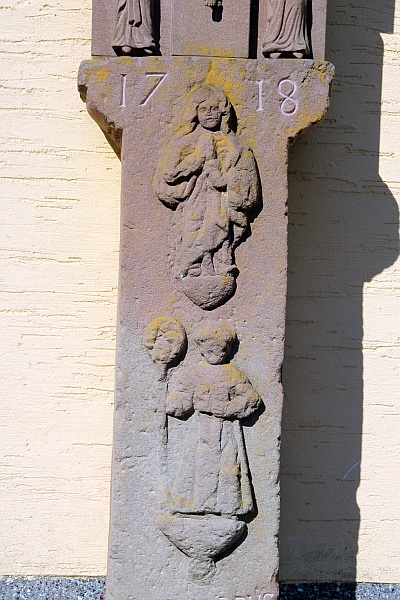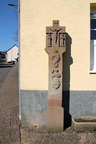 Bildstock von 1718 (Inschrift), zur Schulstraße hin an das völlig modernisierte Eckhaus angelehnt. Auf der Vorderseite zwei derbe Relieffiguren, die untere durch Beischrift als der heilige Bernhard gekennzeichnet. Das obere Schaftende zur Aufnahme der nicht erhaltenen Kreuzigungsgruppe nach beiden Seiten konsolartig verbreitert. [1]