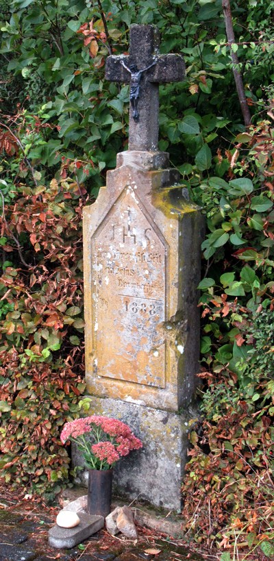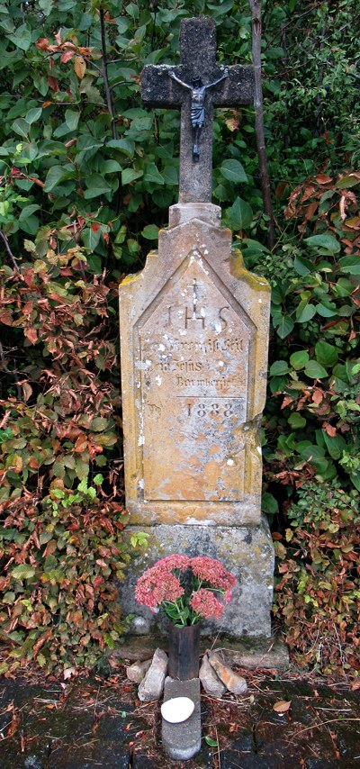 Wegekreuz östlich der Ortslage an der Landesstraße 133, in Rosenkranzweite vom Ort stehendes, 1888 datiertes Stelenkreuz aus Sandstein. Das Kreuz ist von auffallender Schlichtheit, der Schaft dachförmig zum Kreuzaufsatz zulaufend; Porzellankorpus. [1]