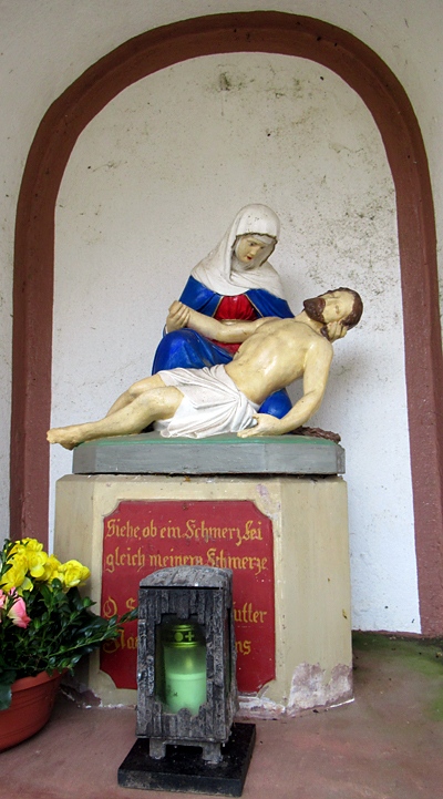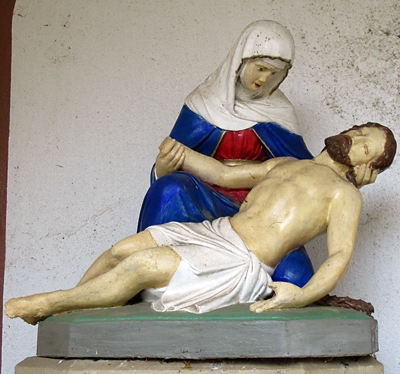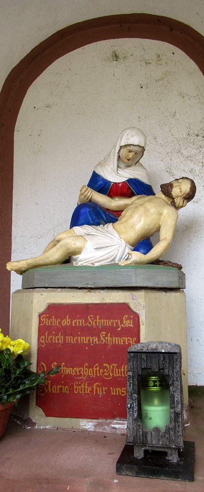 In Nische Pietá, darunter Sockel mit Schrifttafel.