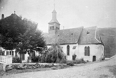 Auf dem ehemaligen Marienhof der Abtei Mettlach. Gründung wohl durch Bischof Nikolaus (525-566). Vor der Kirche drei spätrömische Sarkophage, von denen einer das berühmte Niederemmeler Diatretglas enthielt. [1]