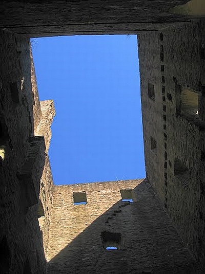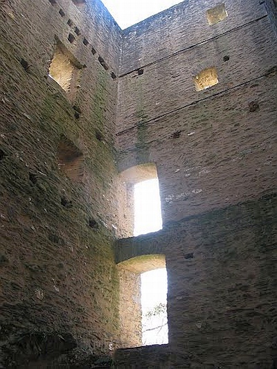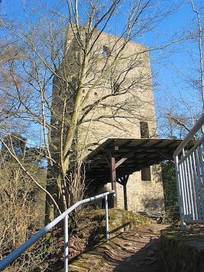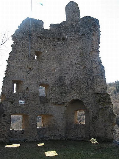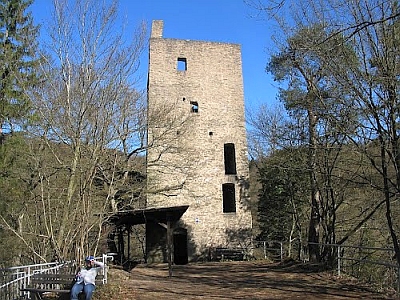 Ruine der kurtrierischen Lehnsburg Sommerau. Erbaut im 13. Jahrhundert vom Trierer Rittergeschlecht Von der Brücke auf einem Felssporn. Die Anlage mißt 40 x 10 Meter und wurde 1979/80 restauriert.