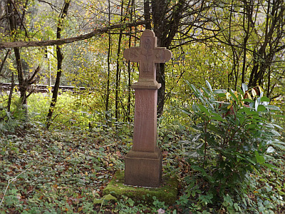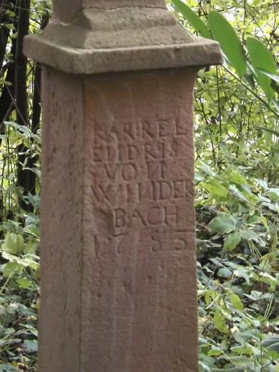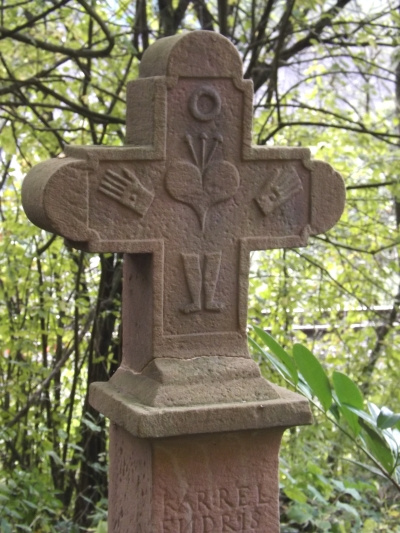 [...] Endres Karel, geboren am 7.10.1762, gestorben am 24.8.1783, mit dem Ochsengespann am Fahrweg nach Daufenbach tödlich verunglückt. Das Kreuz wurde wohl von den Verwandten zum Andenken an den Toten errichtet. [1]