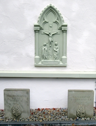 Siedlungsgeschichtlich interessant an der westlichen Ortsspitze exponiert stehende und die leicht abgesetzte Bebauung ausrichtende Kirche mit Pfarrhaus und Friedhof.