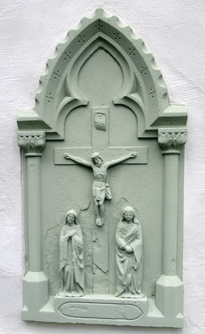 Barocker Figurenschmuck auch am rechten Seitenaltar, darunter Engelfiguren. Im Kirchenschatz die für die Pfarrgründung und Ortsbenennung maßgebliche, im 18. Jahrhundert neugefaßte Kreuzreliquie. Die Kirchenbänke mit barocken Wangen; die Empore mit gotisierender Holzbrüstung wurde 1852 eingebaut. An der südlichen Außenwand ein neugotisches Kreuzigungsrelief in Blendädikula, wohl Priestergrabstein Johann Wilhelm Hess.