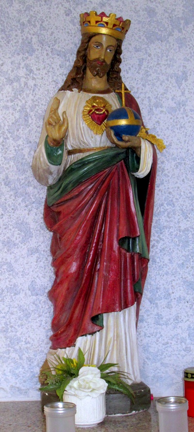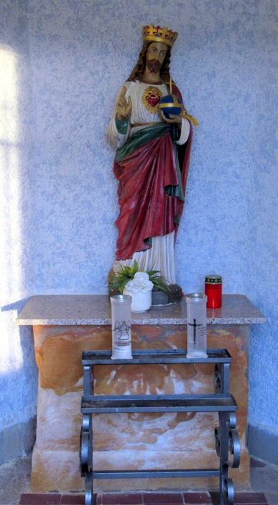 Im Innern eine Herz-Jesu-Statue auf Altar. Rückseitig eingemauert eine Sandsteinblende; die schmiedeeiserne Tür erhalten. [1]
