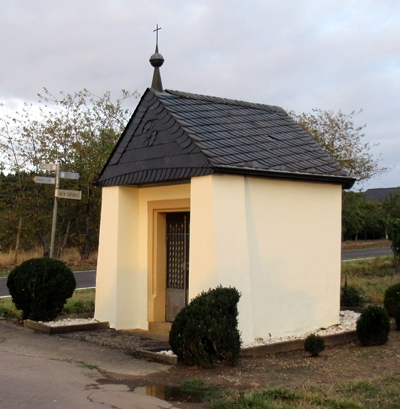 Die Ende des 19. Jahrhunderts errichtete und mit falschen Materialien erneuerte Wegekapelle, ehemals Station von Bittprozessionen.