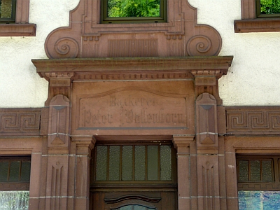 Kleineres, traufständiges Wohn- und Geschäftshaus in geschlossener Zeile, um 1910 für die Bäckerei Peter Wallenborn (Inschrift) erbaut. Die streng symmetrisch gegliederte Fassade verwendet stark verfremdete Architekturformen der Zeit um 1800 mit einzelnen Einflüssen aus dem Jugendstil. Einschließlich der Haustür und der beiden Schaufenster im ursprünglichen Zustand. Bestandteil einer Denkmalzone. [1]