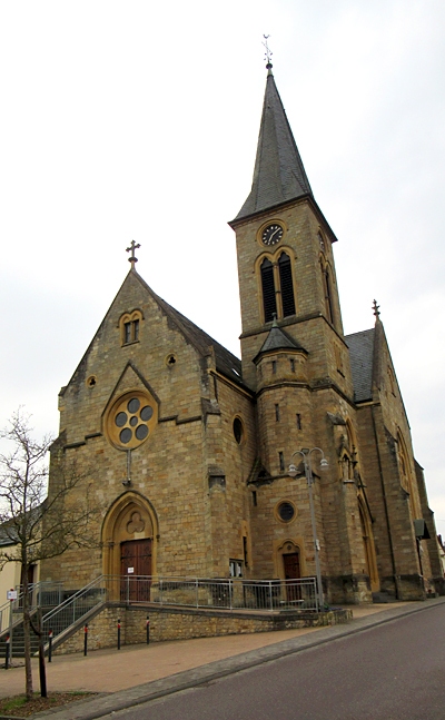 1896 von Viktor Hendler aus Saarburg erbaut. Neugotischer Bau aus gelbem Sandstein. [1]