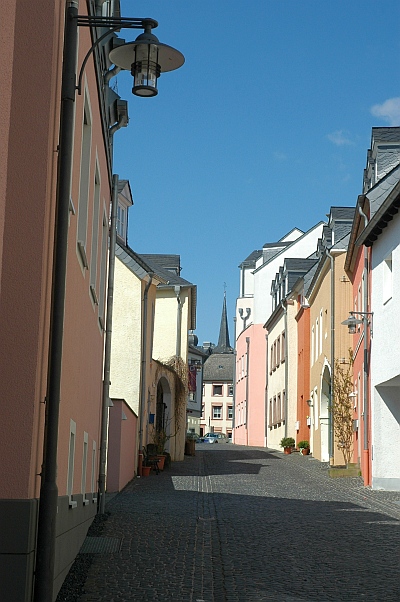 In der vom Krieg größtenteils verschonten Adrigstraße mit ihren beiden Seitengassen läßt sich das bis in die 1920er Jahre ackerbürgerlich geprägte Bitburg trotz der fast ausnahmslos stark modernisierten zeilenbildenden Fassaden noch erahnen.