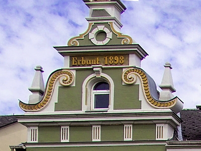 Sandsteingegliederter späthistoristischer Putzbau, bezeichnet 1898. [1]