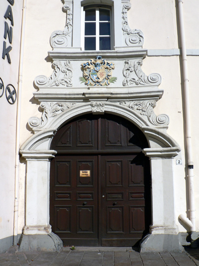 Außenbau und Keller des vermutlich im dritten Jahrzehnt des 18. Jahrhunderts durch die Ratsherrenfamilie Umbscheiden errichteten Barockwohnhauses mit seitlicher, überbauter Hofeinfahrt und Nebengebäude.
