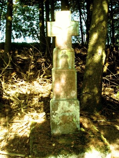 Oberhalb der Inschrift eine Flachnische mit Bild der Gottesmutter. Als Abschluss ein Kreuz mit Corpus (ausgehauen ). Die Geschichte des Kreuzes war nicht zu ermitteln. [1]