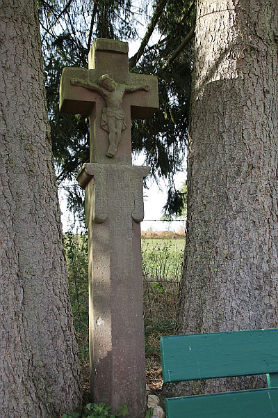 Das in einem Kruzifix endende Schaftkreuz an der Straße nach Ließem wurde 1728 durch Clas Feltges aufgerichtet. Die Kantenabfassung des Schafts endet tiefer als gewöhnlich und schafft so mehr Platz für die Inschrift. [1]
