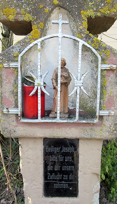Im Nischeninneren eine kleine Figur des Hl. Joseph mit Jesuskind [beschädigt]