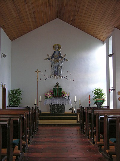 Weil das Gotteshaus zu klein war, riss man es 1961 ab, nachdem auf der anderen Straßenseite die neue, heutige Kirche gebaut worden war.