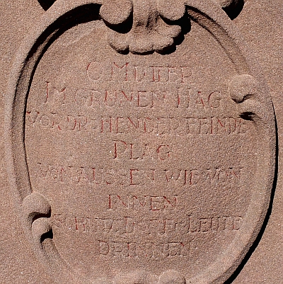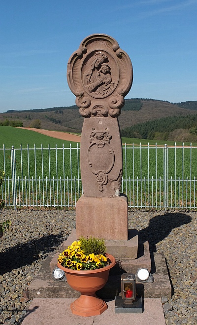1934 von Pfarrer Laros aus rotem Sandstein mit einm Relief der Mutter Gottes errichtet (Inschrift), orientiert sich in seiner Gestaltung an spätbarocken Vorbildern. [1]