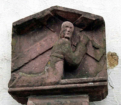 Der Bildstock mit der Darstellung des kreuztragenden Christus dürfte um 1700 entstanden sein; er wurde 1976 überarbeitet und von seinem Standort wenig außerhalb des Ortes an der Straße nach Wengerohr an den Aufgang zur Kirche versetzt. Beide Translozierungen signalisieren die sich wandelnde Bedeutung dieses Zeichens der Volksfrömmigkeit auf dem Land zum nur mehr rahmenden Beiwerk. [1]
