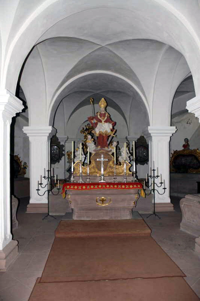 Nach einem Brand 1093 entstand 1148 ein von Papst Eugen III. geweihter Neubau, der 1674 gesprengt wurde. Aus eigenen Mitteln ließen Kurfürst und Erzbischof die Kirche wieder errichten.