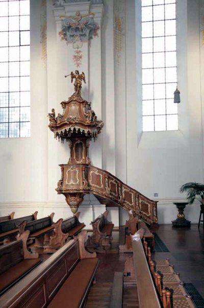 Die gesamte Inneneinrichtung trägt ganz deutlich die Handschrift Balthasar Neumanns. Sein Konzept lässt raffiniert verschiedene Raumteile miteinander verschmelzen. Statt einzelner Raumeindrücke erwartet den Besucher hier ein einziges Raum-Bild. Zahlreiche Details beeindrucken den Betrachter, beispielsweise der Hochaltar, der den des Wormser Doms wiederholt, die Kanzel, die aus dem Zisterzienserkloster Himmerod stammt, die Stukkaturen, Deckenmalereien und Tafelbilder. Über der Orgel kann man das Martyrium der Glaubenszeugen sehen, denen sich im Mittelbild die himmlische Glorie öffnet. Die Chorfresken hat man Paulinus gewidmet.