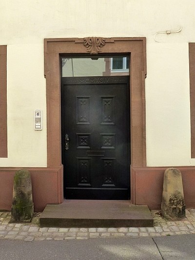 Das markant in die Straße vortretende, verputzte Dreiachsenhaus vertritt einen insbesondere im Klassizismus beliebten Haustyp. Die schlichte Fassade zeigt in der Mitte ein Ohrenfaschenportal mit blattverziertem Sturz.
