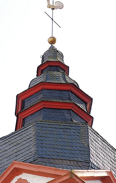 Auf dem Dach des Chorraums steht ein Benediktinerkreuz.
