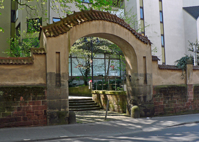Um 1900 errichteter Portalbau sowie mit Personenpforte und Toreinfahrt ausgestattete Beringmauer des 1895 gegründeten katholischen Vereinshauses "Treviris".