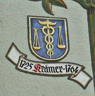 [...] Als Bauzeit des [...] Giebelhauses Nr. 23 ist das Jahr 1595 überliefert. Die kleinere, ebenfalls im Parterre umgebaute Giebelfassade zeigt im ersten Stock spätestgotische Fensterformen: zwei zusammengezogene und zweiteilige Stockfenster, deren Maßwerkdekor den 1596 datierten Gewänden des Hauses Neustraße 42 verwandt ist. Die Anordnung der oberen Fenster - zwei rechteckige, abgefaste Einzelgewände im zweiten Stock und ein kleines Stockfenster im Giebel - geht vermutlich auf eine 1912 erfolgte Fassadenüberformung zurück, die noch heute das Erscheinungsbild prägt. Ihr sind das übergiebelte Bild des heiligen Lukas auf einer Wappenkonsole mit dem heiligen Georg (zwischen den Fenstern des zweiten Stocks) ebenso zuzuschreiben wie die aufgeputzte und farbig gefaßte, jugendstilhafte Rankenzier. Diese weist auf die Handwerksberufe der Hausbewohner in der Art von Zunftzeichen in Wappenform hin: Metzger (vor 1725), Krämer (1725-64), Perückenmacher (1785-93), Schlosser (1793), Uhrmacher (1825-85), Imker (1885-1912) und Maler (nach 1912).