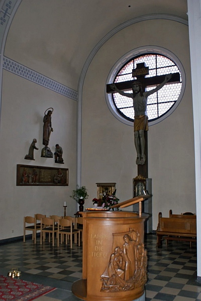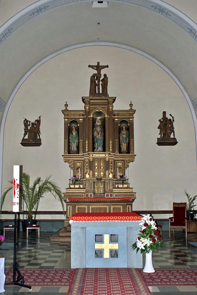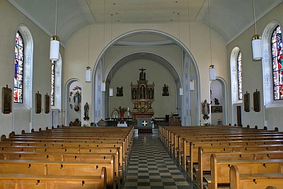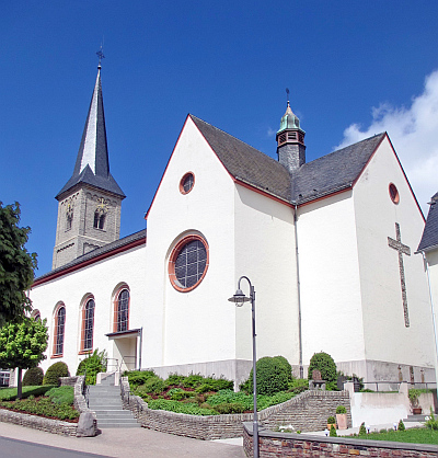 1830-34 errichteter klassizistischer Saalbau. 1935 durch Monz (Trier) erweitert. Sandsteinepitaph für Hans von Rascheit (*1566), gesetzt 1571. [1]