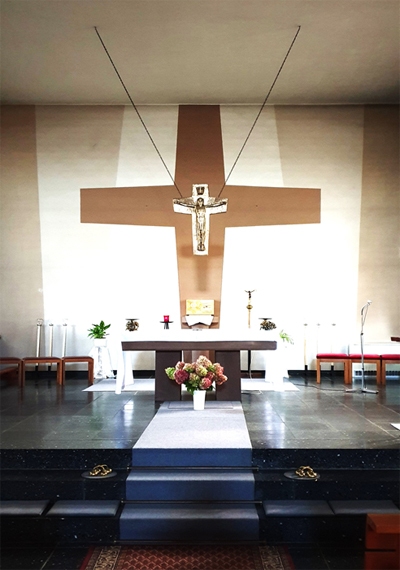 [...] 1962 hatte man einen neuen Platz für die Kirche am Südrand des Dorfes gefunden. Von der Zivilgemeinde wurde beschlossen, dass das dafür vorgesehene Grundstück der Kirchengemeinde kostenlos zur Verfügung gestellt wird, wenn dafür der Platz, auf dem die alte Kirche steht, in das Eigentum der Zivilgemeinde übergeht. Die feierliche Grundsteinlegung erfolgte am Namenstag des Heiligen Erasmus, am 2. Juni, dem Schutzpatron der Filiale Weiperath. Dieser Tag fiel in diesem Jahr auf das Pfingstfest. In einer Kapsel wurde folgender Text in lateinischer und deutscher Sprache eingemauert: "Im Jahre des Heils 1963, am zweiten des Monats Juni, am Pfingstfeste, als Johannes XXIII. Papst war, Heinrich Lübke Präsident der Bundesrepublik Deutschland, Matthias Wehr Bischof zu Trier, Martin Grundheber Pfarrer in Morbach, zu der Zeit Dechant, zur selben Zeit, als Alois Reuber Pfarrer von Hunolstein war, Josef Leuck Bürgermeister von Weiperath, ist für diese Filialkirche von Hunolstein, zu Ehren des heiligen Erasmus, entworfen vom Architekten Schadow in Trier, gebaut vom Architekten Schmitt aus Morbach und von der ganzen Bevölkerung aus Weiperath, dieser Grundstein gelegt worden. Weiperath, den 2. Juni 1963."