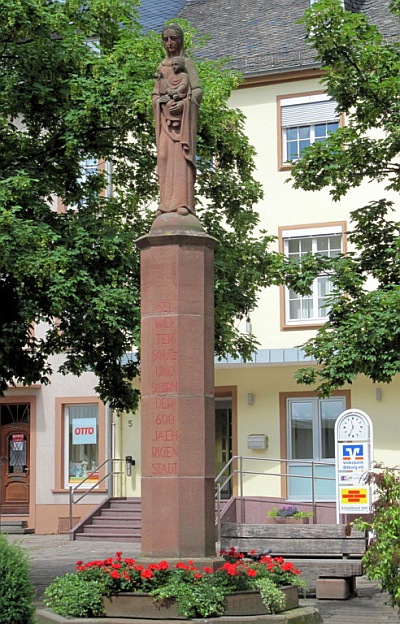 Mariensäule, errichtet 1932 zur 600 Jahrfeier der Stadtrechtsverleihung Neuerburgs durch Friedrich von Neuerburg und Brandenburg im Jahre 1332. [1]
