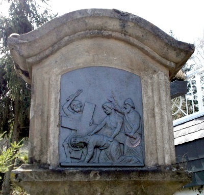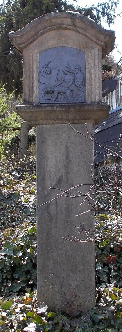 Von den ehemals 14 Kreuzwegstatiorfen fehlt die erste. Die Datierungen an der zweiten (1820) und an der neunten Station (1810) grenzen den Errichtungszeitraum ein.
