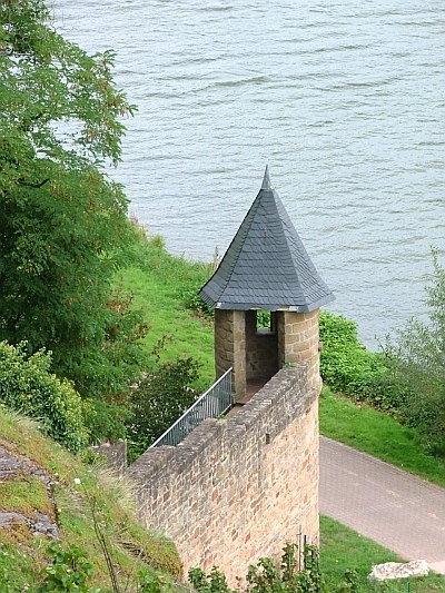 Kautentürmchen, der einstigen Erhebungsstätte für den Wasserzoll. Das in der Stadtansicht von 1576 erwähnte Rundtürmchen wurde nach Kriegszerstörung 1953/54 wiedererrichtet und im Zuge des Saarausbaues abgebaut und 1984 rekonstruiert. [1]