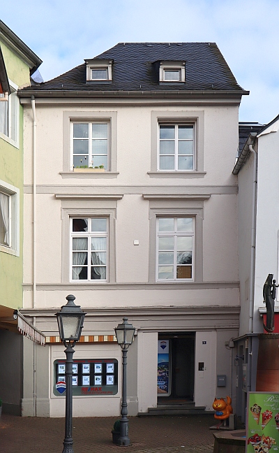 An der Nordseite des eigentlichen Marktes ist der dreigeschossige, dreiseitig freistehende Putzbau des 18. Jahrhunderts Im 19. Jahrhundert erneuert und in den 1910er Jahren im Innern einheitlich überformt, wird die stadtgeschichtliche Bedeutung durch aufwendigen, differenzierten Bauschmuck mitgeteilt. [1]