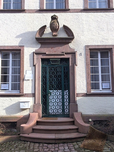 In der Mittelachse geohrtes Eingangsportal, darüber Sprenggiebel mit kurfürstlichem Wappen. Die großen Rechteckfenster und die durchlaufenden Fensterbankgesimse, die in der Region sonst erst um 1800 auftreten, lassen einen auswärtigen Baumeister vermuten.