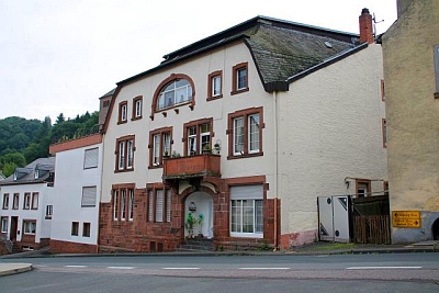 In Proportion und Gliederung wenig anspruchsvolle Bauhandwerkerarchitektur, die schlicht barockisierenden Einzelformen sehr konventionell. Über dem breiten, segmentbogigen Eingang ein Balkon, auf dessen vorderer Brüstungsplatte die Inschrift DAMPFBÄCKEREI ROBERT NIEDER-PRÜM, auf der linken und rechten Seite ergänzt durch die Inschriften MEHL, FRUCHT & SALZLAGER sowie CONDITOREI & CAFE.