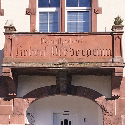 In Proportion und Gliederung wenig anspruchsvolle Bauhandwerkerarchitektur, die schlicht barockisierenden Einzelformen sehr konventionell. Über dem breiten, segmentbogigen Eingang ein Balkon, auf dessen vorderer Brüstungsplatte die Inschrift DAMPFBÄCKEREI ROBERT NIEDERPRÜM, auf der linken und rechten Seite ergänzt durch die Inschriften MEHL, FRUCHT & SALZLAGER sowie CONDITOREI & CAFE.