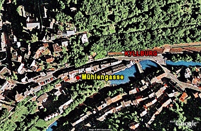 Führt sowohl von der Burgsiedlung als auch von der Kyllbrücke zur bereits im 13. Jahrhundert nachgewiesenen, ehemals kurfürstlichen Mühle. Nur am Fuß des Berghanges, also in der östlichen Hälfte bebaut; älter sind hier die Mühle selbst und einige Häuser östlich von ihr, während die Zeile zwischen Straße und Kyll erst nach 1900 dazu kam.