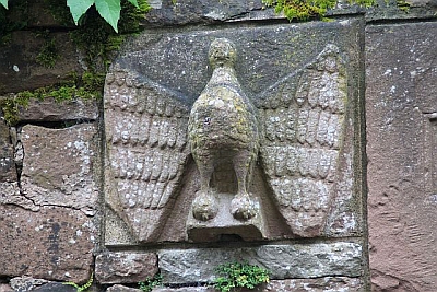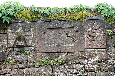 Den ehemaligen Zugang zur Stiftsfreiheit bezeichnen noch heute mehrere Relief- und Inschriftsteine in einer Gartenmauer schräg gegenüber dem Burgwestflügel. Das größte Stück trägt auf einer eingetieften Platte die Inschrift STIFTSFREYHEIT, rechts daneben eine Schwurhand (eine zweite Schwurhand im Torpfeiler des Hauses Auf dem Stift 1 eingemauert). Ebenfalls auf die rechtliche Stellung der Freiheit weist das fast vollplastische Relief eines Adlers auf dem zweiten Stück. Ein weiterer Stein zeigt unter der Jahreszahl 1768 das elterliche Wappen des Christoph Philipp Nell. [2]