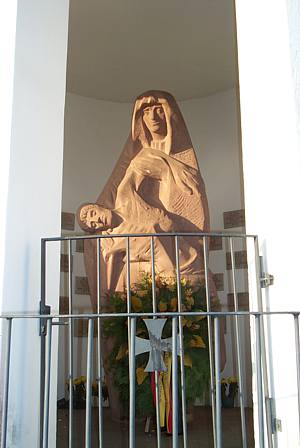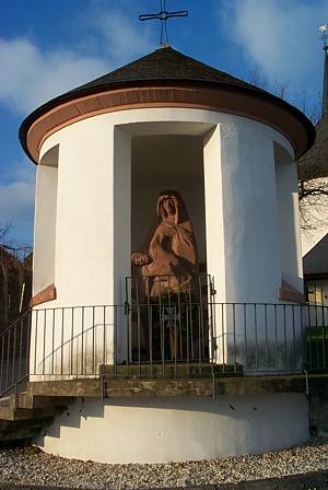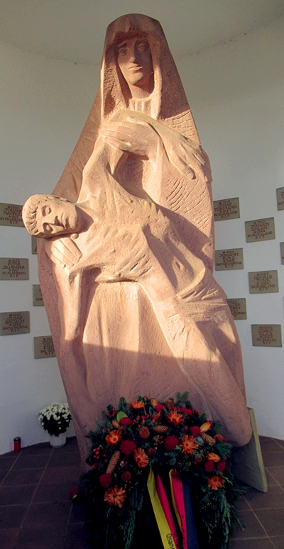Kapelle an der Südwestecke des Friedhofs bei der Kirche. Im Inneren eine mächtige pietàmäßige Sandsteinfigur einer Mutter mit ihrem gefallenen Sohn im Schoß. Namenstafeln an der Innenwand der Kapelle für die Gefallenen beider Weltkriege. [1]