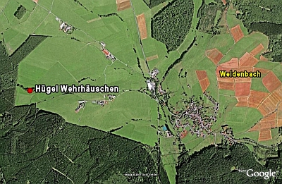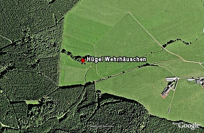 Der bei Ost, Kreis Daun beschriebene Hügel "Wehrhäuschen" konnte von Herren M. Heinen, Bleckhausen und H. Schmitz, Gerolstein, lokalisiert werden. Es handel sich keinesfalls um einen Grabhügel, eher um eine kleine Motte oder ähnliches, worauf ja schon die traditionelle Bezeichnung hinweist. In die gegenüber der Umgebung um 2 - 3 m eingetiefte Aue des Hillscheider Baches ist auf dessen Südufer ein etwa 10 x 10 m großer und rund 3 m hoher, annähernd pyramidenstumpfförmiger Hügel aus steinigem Lehm aufgeschüttet, der nach Süden und Südwesten Abstand vom höheren Umland wahrt und dadurch auf den zwei bachabgewandten Seiten einen Graben gewinnt. Er überragt die Landseite allerdings nicht. Dort scheint das Gelände allerdings auch - vielleicht im Sinne einer Vorburg - leicht überhöht. Vielleicht steht die Anlage mit der wenig entfernten Wüstung Hillscheid in Zusammenhang.