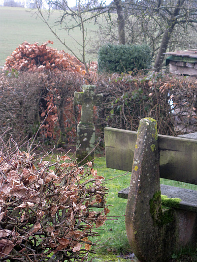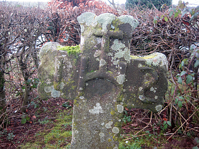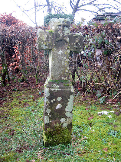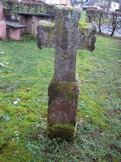 Kleines Balkenkreuz auf fast ebenso hohem Sockel. Aufgrund der doppelt gespaltenen Balkenenden und der Form des IHS-Zeichens auf dem Querbalken wohl spätes 18. oder frühes 19. Jahrhundert. [1]