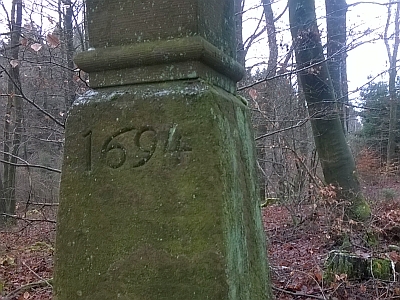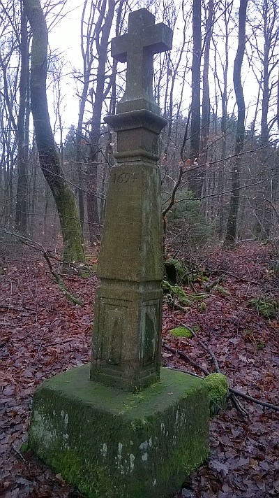 Am früheren Fußweg nach Balesfeld, nahe der Gemarkungsgrenze: 1694 datiertes Schaftkreuz, nur der diamantierte Sockel und der größte Teil des stark nach oben verjüngten Schaftes erhalten. Neues Abschlußkreuz. [1]