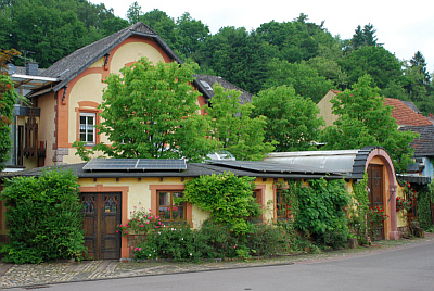 Das Mannebacher Brauhaus, typisches Bauernhaus im moselfränkischen Stil, 1897 erbaut, auch als Gaststube genutzt.